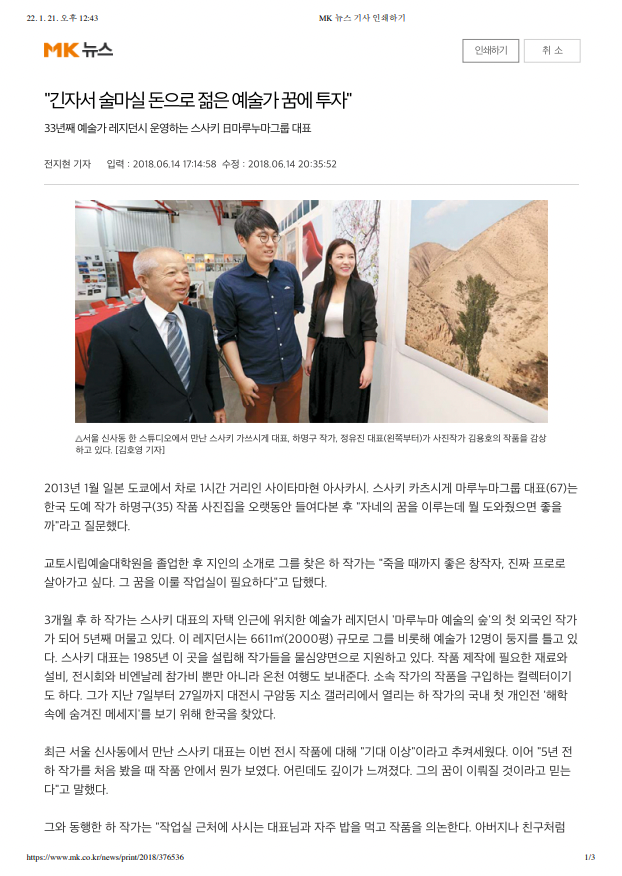[2018.06.14] [매일경제] 하명구작가, 정유진대표, 일본 마루누마그룹대표 스사키와의 인터뷰